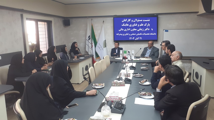 جلسه رئیس پارک علم و فناوری هایتک و معاون اداری، مالی دانشگاه تحصیلات تکمیلی صنعتی و فناوری پیشرفته با کارکنان پارک هایتک به منظور طرح و تبادل نظر پیرامون مسایل جاری کارکنان برگزار شد.