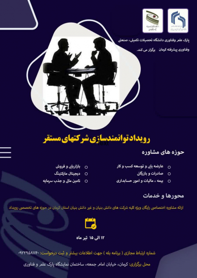 برگزاری رویداد توانمندسازی شرکت‌های دانش‌بنیان و غیر دانش‌بنیان استان کرمان