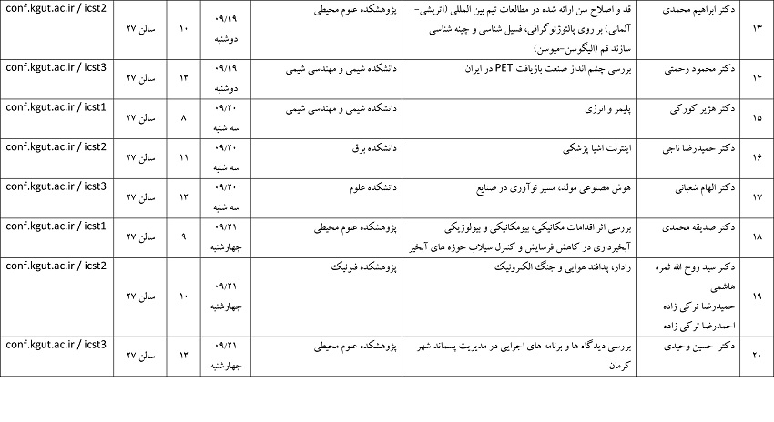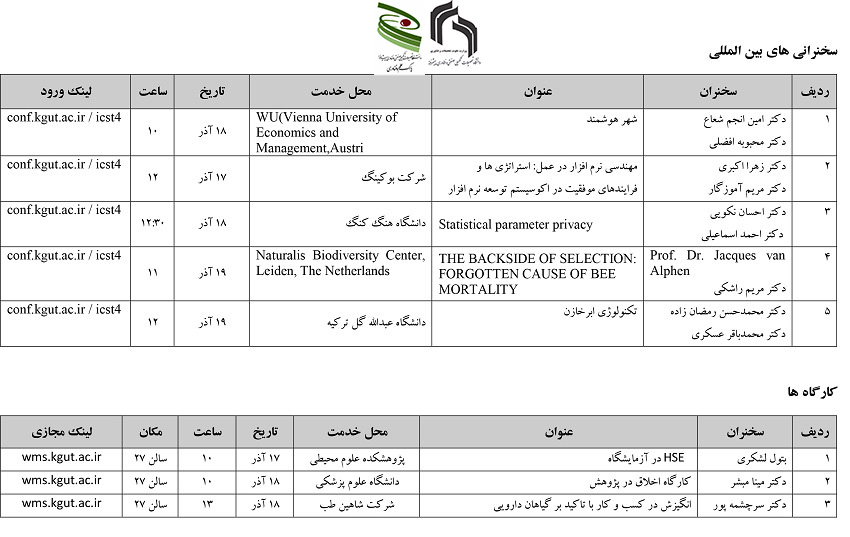 جزئیات برنامه سخنرانی ها و کارگاه ها به شرح جداول زیر است: