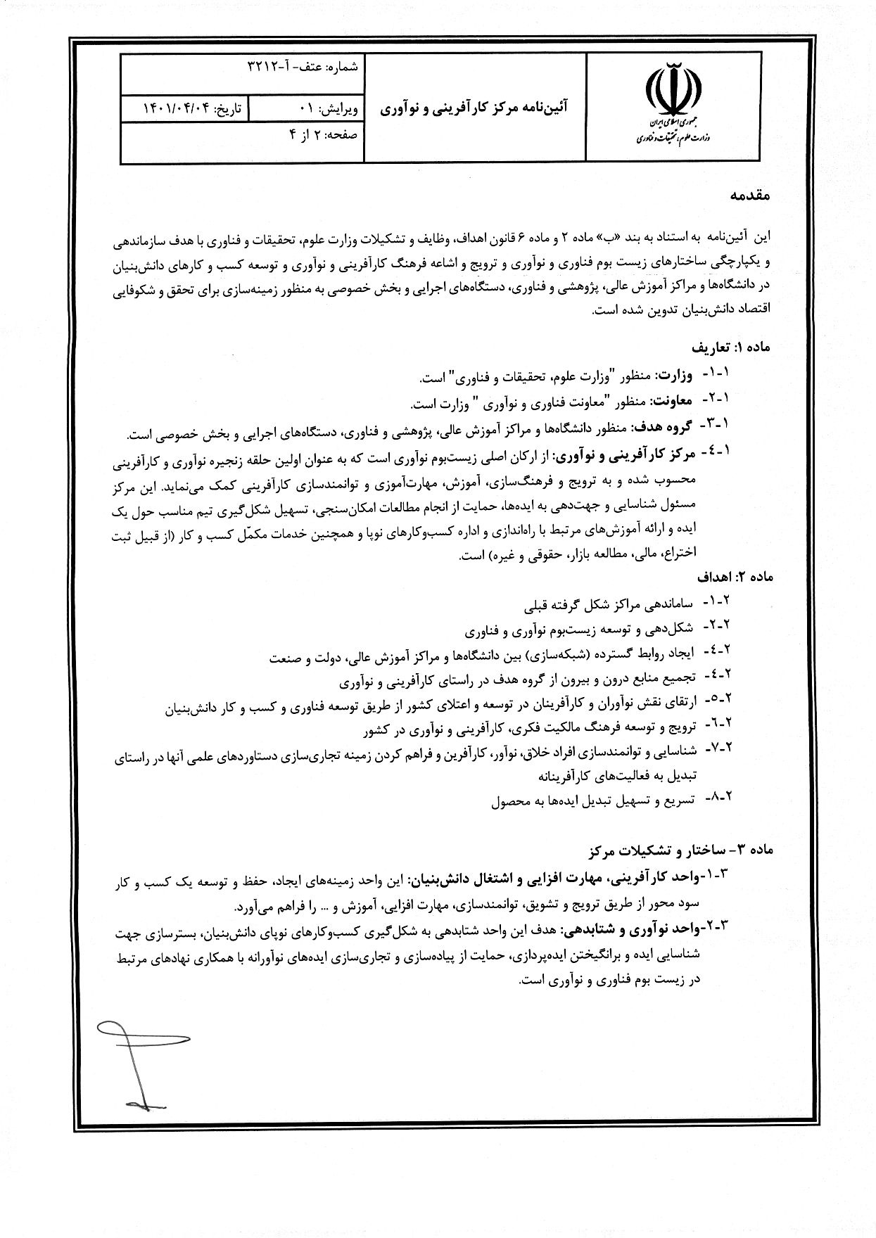 آئین نامه اجرایی تاسیس واحد های پژوهشی و آزمایشگاهی