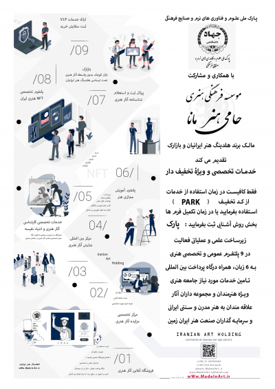 به گزارش روابط‌عمومی پارک علم و فناوری، مؤسسه فرهنگی هنری «حامی هنر مانا» با همکاری پارک علوم و فناوری‌های نرم و صنایع فرهنگی، در جهت حمایت از شرکت‌ها و مؤسسات فرهنگی و هنرمندان، در حوزه بازاریابی و فروش آثار هنری، برگزاری نمایشگاه‌های مجازی،NFT و تهیه آثار هنری امکان استفاده از زیر ساخت‌های نرم‌افزاری مؤسسه به نشانی https://www.madeinart.ir  را فراهم کرده است.