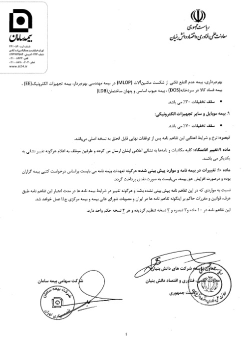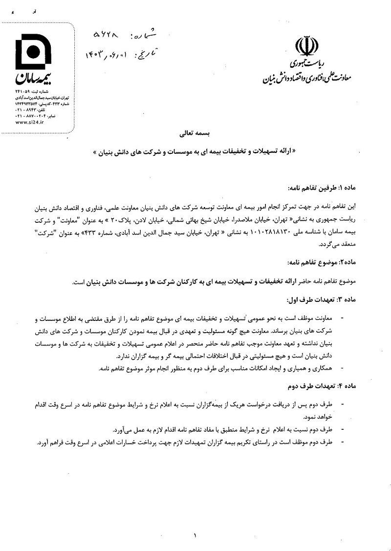 بر اساس تفاهم نامه معاونت علمی و فناوری ریاست جمهوری با بیمه سامان؛