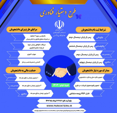 برای ثبت نام و اطلاعات بیشتر طرح، به سامانه www.PARKINTERN.ir مراجعه کنید.