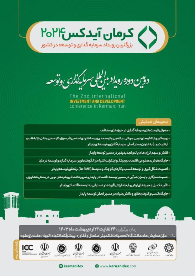 دومین دوره رویداد بین‌المللی سرمایه‌گذاری و توسعه (کرمان آیدکس ۲۰۲۴) در تاریخ ۲۴ الی ۲۷ اردیبهشت‌ماه ۱۴۰۳ در محل دانشگاه تحصیلات تکمیلی صنعتی و فناوری پیشرفته برگزار می‌شود.