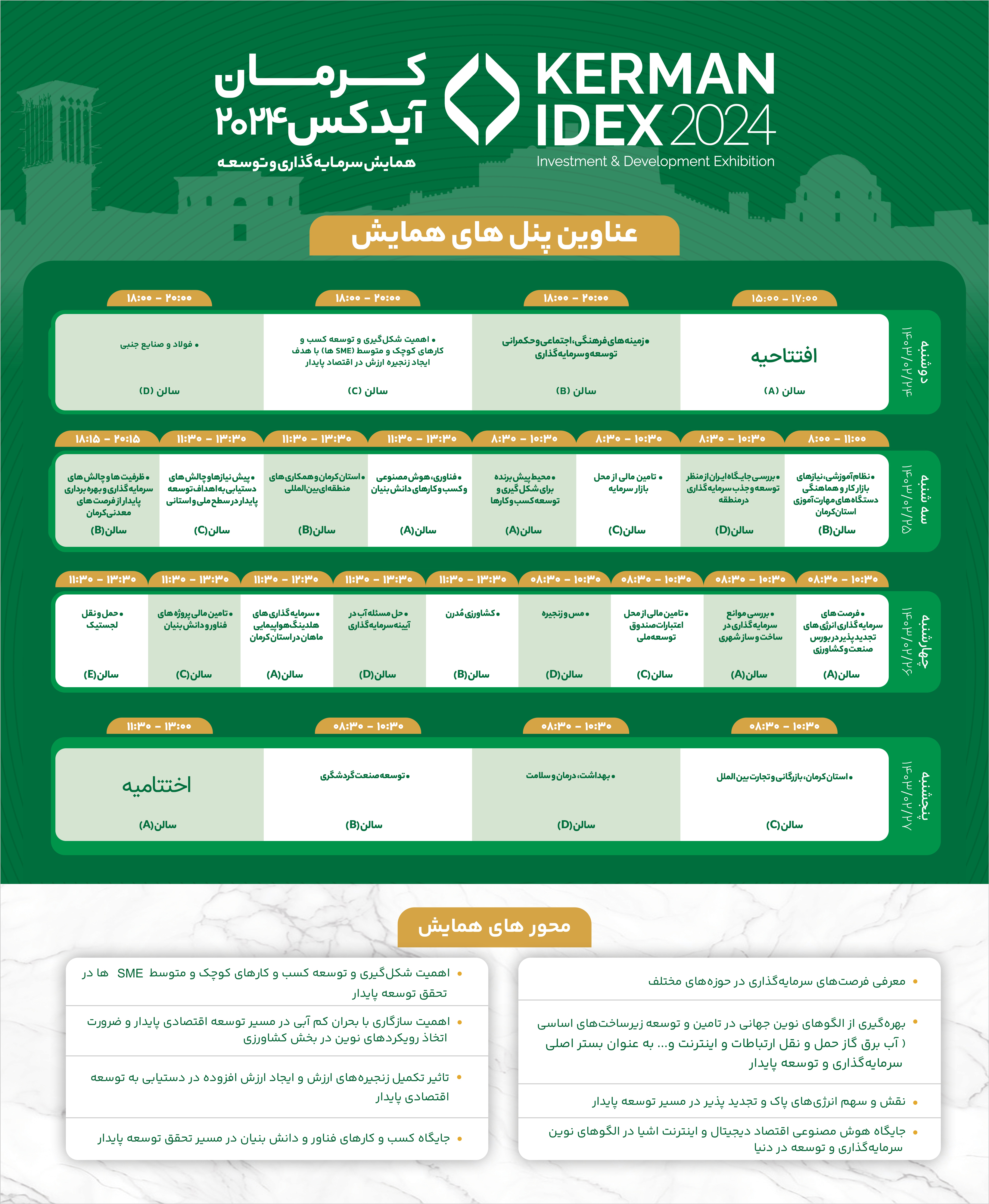 برنامه پنل‌های تخصصی همایش «کرمان آیدکس» در پیوست خبر موجود است.