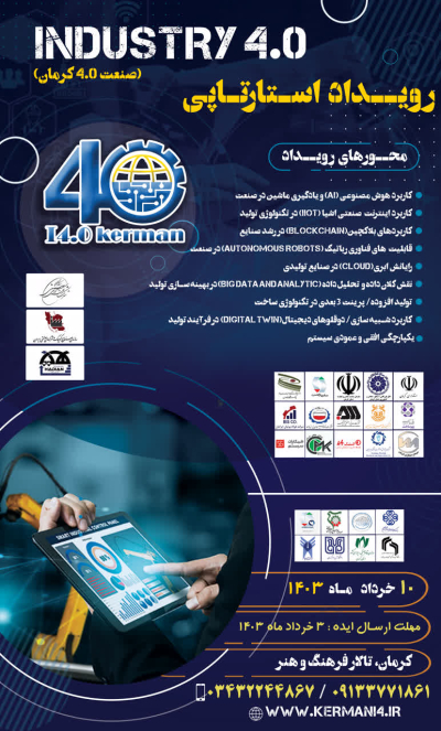 رویداد استارتاپی صنعت ۰-۴ کرمان، در تالار مرکزی فرهنگ و هنر کرمان در تاریخ ۱۰ خرداد ۱۴۰۳ برگزار میشود.
